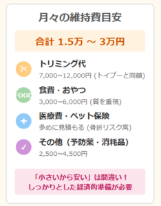 トリミング代や食費などのランニングコスト