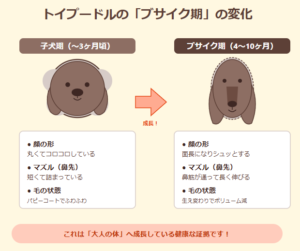 トイプードルのブサイク期は、柔らかいパピーの毛から、コシのある成犬の毛へと生え変わる大切な時期です。
