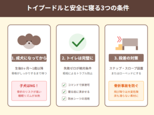 特にシニア期に入ったトイプードルや、持病がある子の場合は、夜間の見守りができるという点で、一緒に寝るスタイルを選ぶ飼い主さんも多くいます。